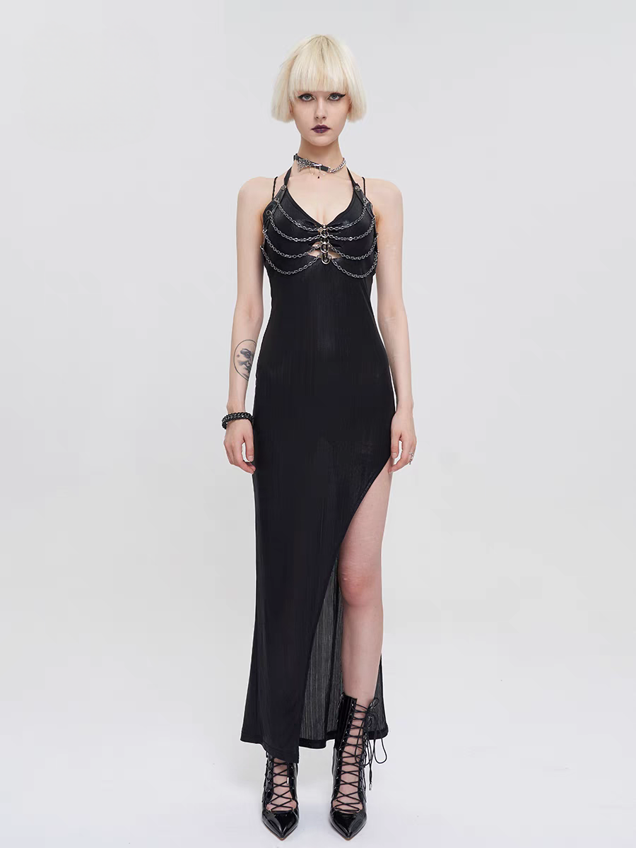 🌟 When the blood moon-dyed silk climbs up the body curves, when the church chains rebel and become seductive weapons, this dress becomes a "mobile gothic execution ground" - every sway of the high slit is a public execution of the pure lust aesthetics! 🌟
